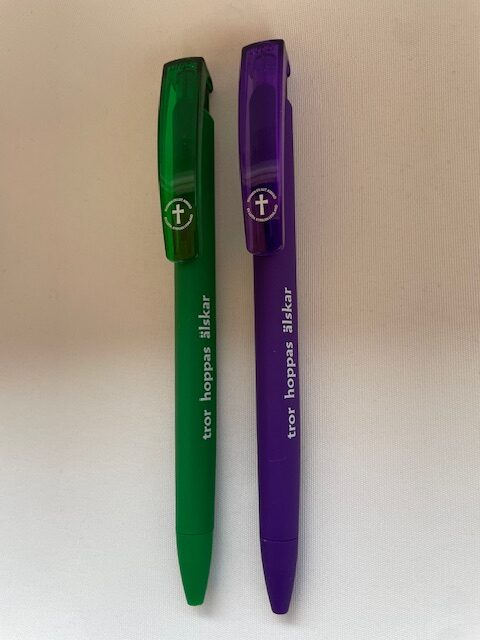 Laadukas ruotsinkielinen kynä sinisellä musteella joka on valmistettu kierrätetystä rPET materiaalista. Pakkauksessa on puolet vihreitä ja puolet liiloja kyniä.